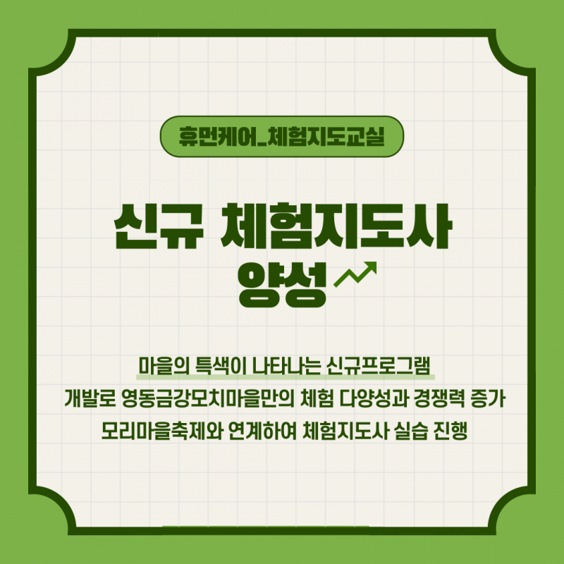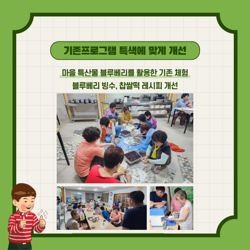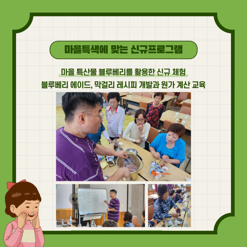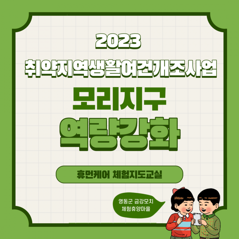 2023년 취약지역생활여건개조사업 모리지구 역량강화 휴먼케어_체험지도교실 페이지 정보 작성자 영동군지역활성화센터 댓글 댓글 0건 조회Hit 959회 작성일Date 23-08-23 11:22 본문 목록 이전글2023년 송호지구 취약지역생활여건개조사업 주민역량강화 휴먼케어 :: 카페음료교육 23.09.27 다음글2023년 법화리 취약지역생활여건개조사업 역량강화 23.08.17