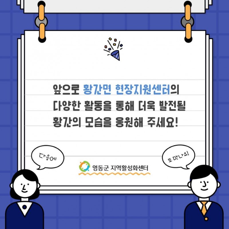 황간면 현장지원센터 소개 페이지 정보 작성자 영동군지역활성화센터 댓글 댓글 0건 조회Hit 909회 작성일Date 22-04-07 10:48 본문 [이 게시물은 영동군지역활성화센터님에 의해 2022-04-08 17:32:35 도시재생이야기에서 이동 됨] 목록 이전글아로마 토탈공예 교실 - 황간면 도시재생 뉴딜사업 22.07.26 다음글새뜰마을사업 상가새뜰학교·법화주민학교 21.08.27