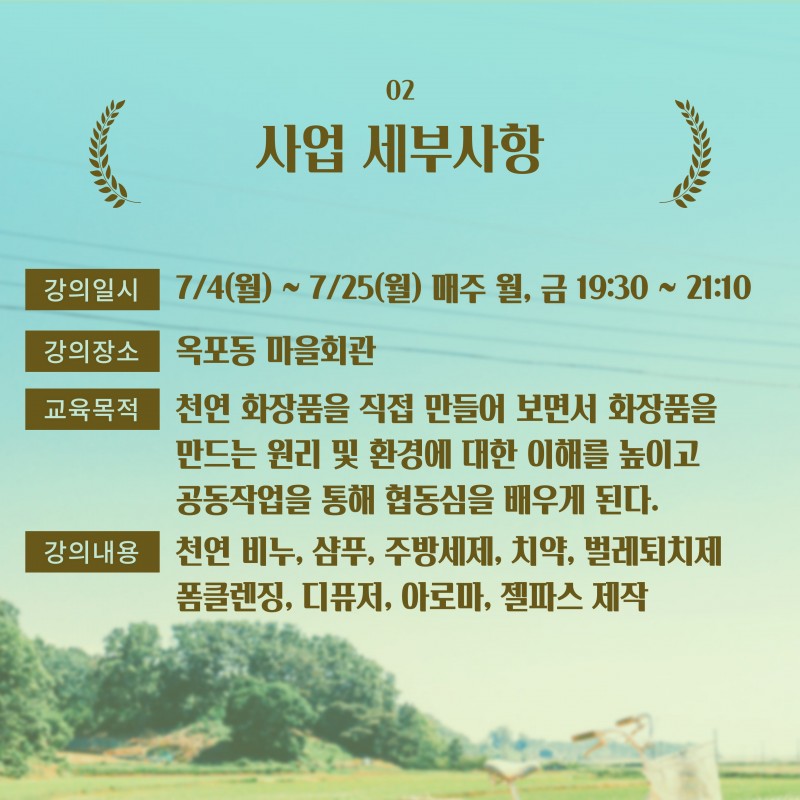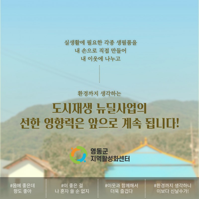 아로마 토탈공예 교실 - 황간면 도시재생 뉴딜사업 페이지 정보 작성자 영동군지역활성화센터 댓글 댓글 0건 조회Hit 1,452회 작성일Date 22-07-26 15:08 본문 목록 이전글제8회 블루베리축제와 함께하는 모두 모이리 23.06.29 다음글황간면 현장지원센터 소개 22.04.07