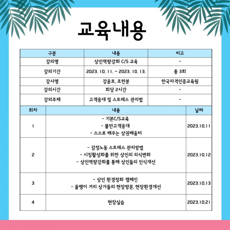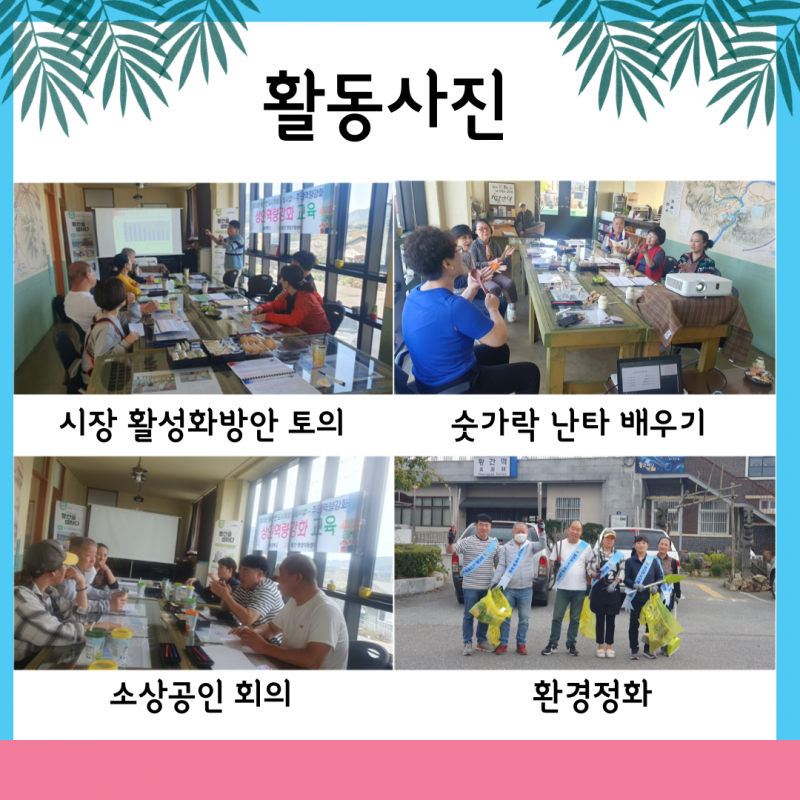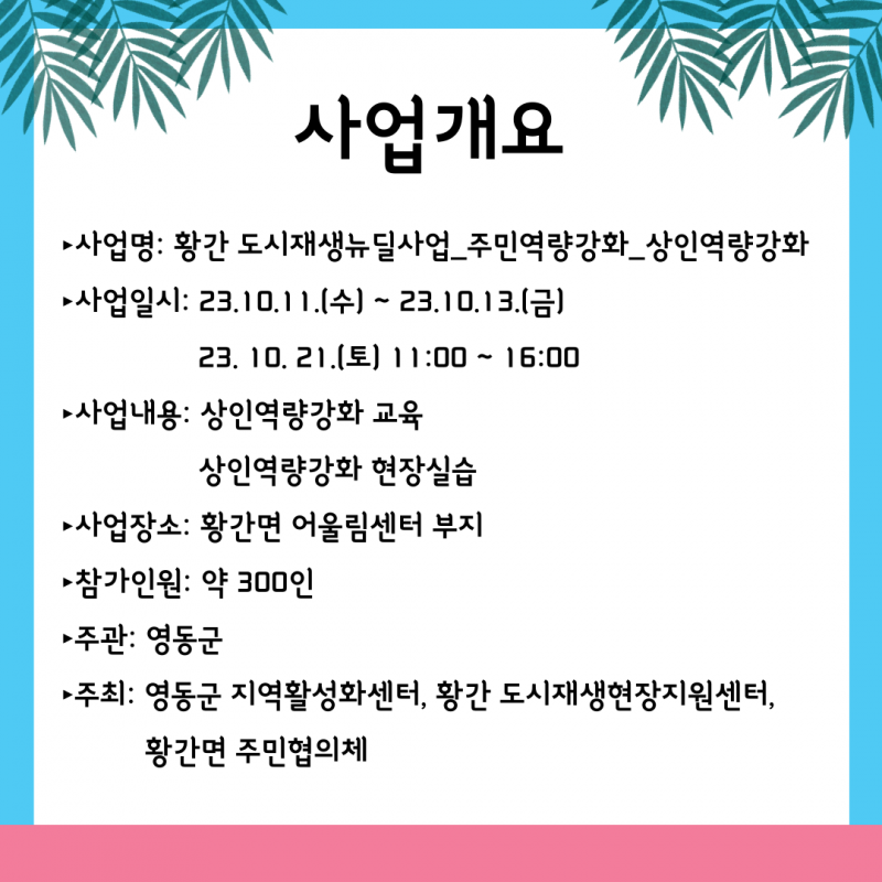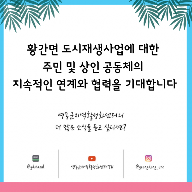 황간면 도시재생뉴딜사업 주민역량강화 [상인역량강화] 페이지 정보 작성자 영동군지역활성화센터 댓글 댓글 0건 조회Hit 869회 작성일Date 24-08-01 13:12 본문 . 목록 이전글2024 모리 취약지역생활여건개조사업 휴먼케어 마을축제_모두모이리 24.08.12 다음글황간면 도시재생뉴딜사업 주민역량강화 [집가꿈 프로젝트] 24.07.30