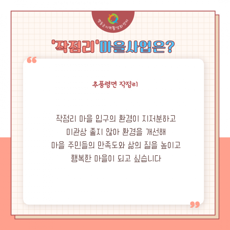 추풍령면 작점리 페이지 정보 작성자 영동군지역활성화센터 댓글 댓글 0건 조회Hit 2,399회 작성일Date 22-06-07 14:00 본문 ♥더 많은 영동의 소식과 이야기를 듣고 싶으시다면?♥ 영동군지역활성화센터 밴드https://band.us/@ydmaeul · 목록 이전글용산면 천작리 22.06.07 다음글용산면 상용리 22.06.07