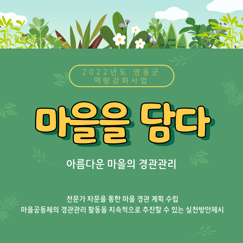 마을을 담다 페이지 정보 작성자 영동군지역활성화센터 댓글 댓글 0건 조회Hit 2,778회 작성일Date 22-03-24 14:27 본문 ♥더 많은 영동의 소식과 이야기를 듣고 싶으시다면?♥ 영동군지역활성화센터 밴드https://band.us/@ydmaeul 목록 이전글영동읍 설계리 22.04.01 다음글영동읍 설계리 21.08.20