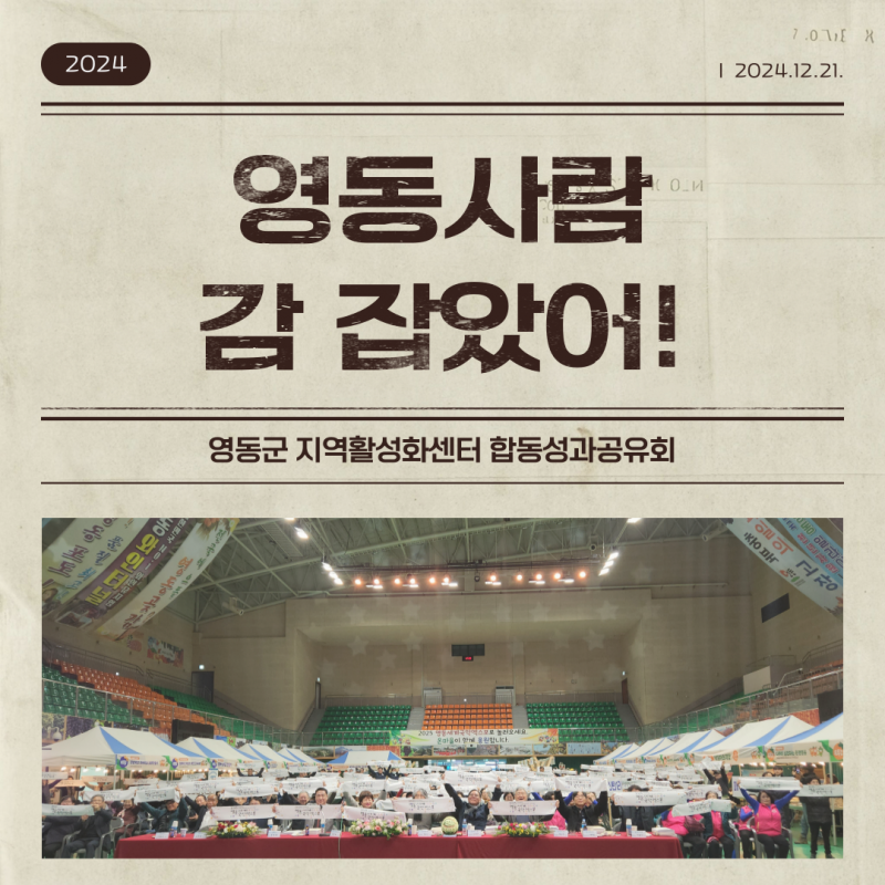 2024_영동군 지역활성화센터 합동성과공유회 페이지 정보 작성자 영동군지역활성화센터 댓글 댓글 0건 조회Hit 753회 작성일Date 25-02-24 13:11 본문 목록 이전글영동군 역량강화_완료지구활성화_추풍령 25.07.16 다음글마을만들기한마당 24.07.29