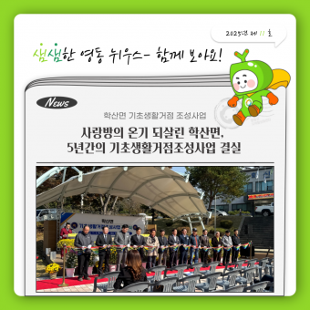 6일, 학산면사무소 광장서 기초생활거점조성사업 준공식체육시설•야외무대•지역 커뮤니티 시설까지… 주민 삶의 질 높..