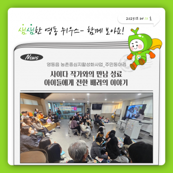 "22일, 교육도서관서 영동동화읽는어른모임 작가와의 만남 성료‘고구마구마’, ‘풀친구’ 등 사이다 작가 대표작 ..
