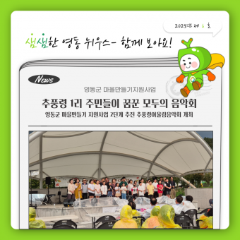 안녕하세요!'마을만들기-도시재생-농촌협약'통합형 중간지원조직영동군 지역활성화센터입니다!2025년 영동군 지역활성화센터의 4..