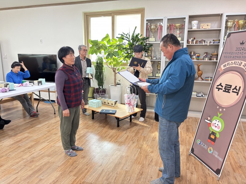 이번에 바리스타 2급 자격증을 발급한 한국커피음료협회 배전기 회장은 “교육과정이 쉽지 않았을 텐데 노력하신 모습이 감동적이었고 저에게도 많은 귀감이 됐다”며 “앞으로 배운 기술을 갖고 송호리가 발전될 수 있도록 많은 활동을 해주셨으면 좋겠다”고 말했다.