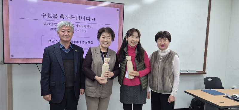 이날 수료식에서는 김현숙 교육생이 만든 활동의 추억을 담은 영상을 함께 시청하고 수료증을 전달한 후 한달 간 교육에서 느낀 소회를 나눴다. 말미에는 수료생들이 직접 만든 저염식, 당뇨식 음식을 함께 즐기는 시간을 가졌다.