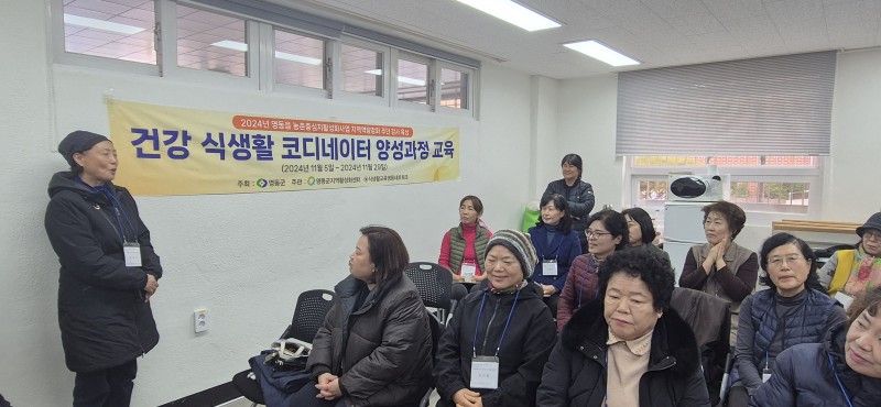 2기를 맞은 건강한 식생활코디네이터 양성 교육은 영동군지역활성화센터와 식생활교육영동네트워크가 주관하는 것으로, ‘영동읍 농촌 중심지 활성화 사업’의 일환이다. 교육생들은 11월 한달간 건강한 식생활에 대한 이론을 학습하고 현장 실습을 진행했다. 교육을 수료하면 보조강사 자격증이 부여되니, 지역 주민들의 올바른 식생활 문화를 도모하는 지역활동가를 양성하는 교육인 셈이다. 식생활교육영동네트워크의 예산 2천만 원으로 진행되었으며 수강생들은 전액 무료로 수강할 수 있었다.