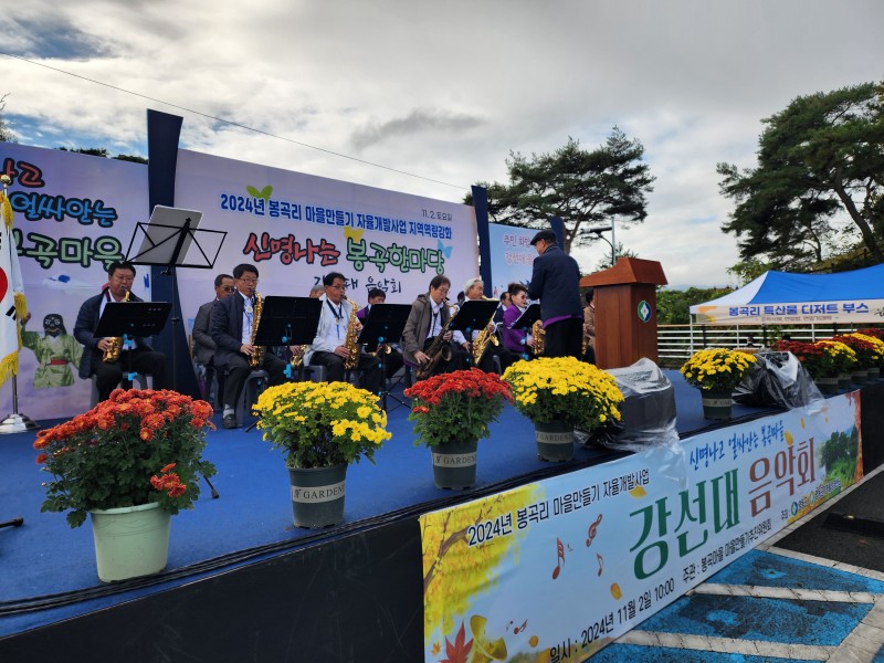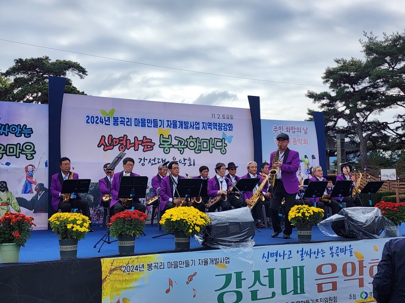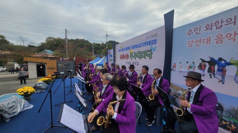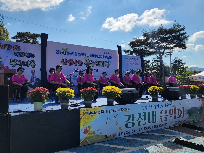 조만간 사랑방 카페 신축과 함께 경로당 2층 리모델링을 앞둔 양산면 봉곡리. 올 연말을 맞아 주민들을 위한 기쁨의 장을 마련했다. 지난 2일 오전10시 봉곡리 강선대 주차장에서 특별한 행사가 열렸다. 바로 봉곡리마을만들기추진위원회(위원장 장영래)와 영동군지역활성화센터(센터장 박엄용)가 공동 주관한 ‘신명나는 봉곡한마당 강선대 음악회’가 열린 것.