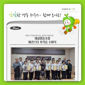 용화면 용화리 부녀회원 17명 필기·실기검정 거쳐 바리스타 2급 자격증 취득충북 영동군 용화면 용화리 새삶 협동조합이 바리..