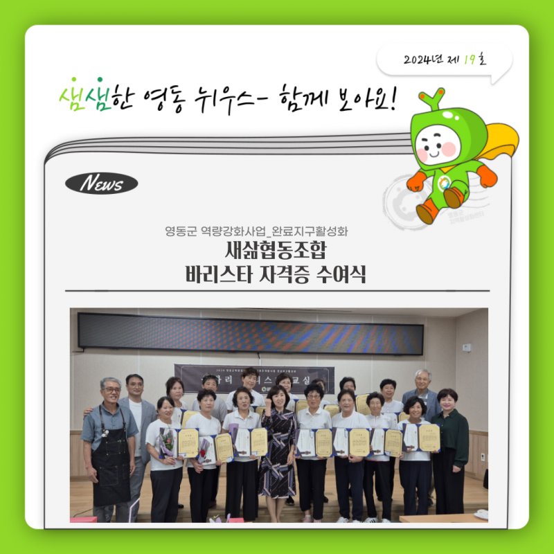 샘샘정보통 용화리 새삶협동조합 바리스타 자격증 수여식