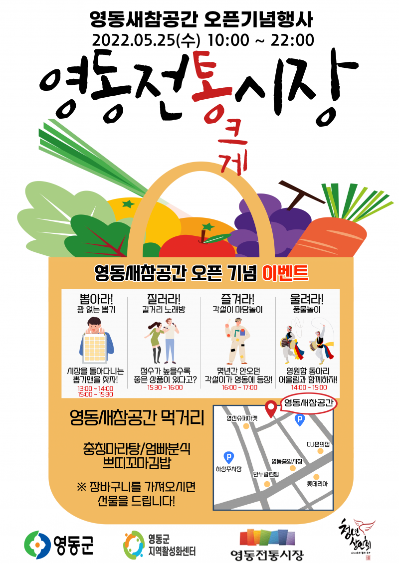 행사 2022년 영동새참공간 오픈기념 행사 페이지 정보 작성자 영동군지역활성화센터 댓글 댓글 0건 조회Hit 1,322회 작성일Date 22-05-16 17:39 본문 더 많은 영동의 소식과 이야기를 듣고 싶으시다면?영동군 영동읍 계산로2길 28 2층https://band.us/@ydmaeul 목록 이전글2022년 황간면 도시재생현장센터 코디네이터 채용 22.06.15 다음글2022년 주민맞춤형교육 나는 배우다 참여자 모집 22.05.09