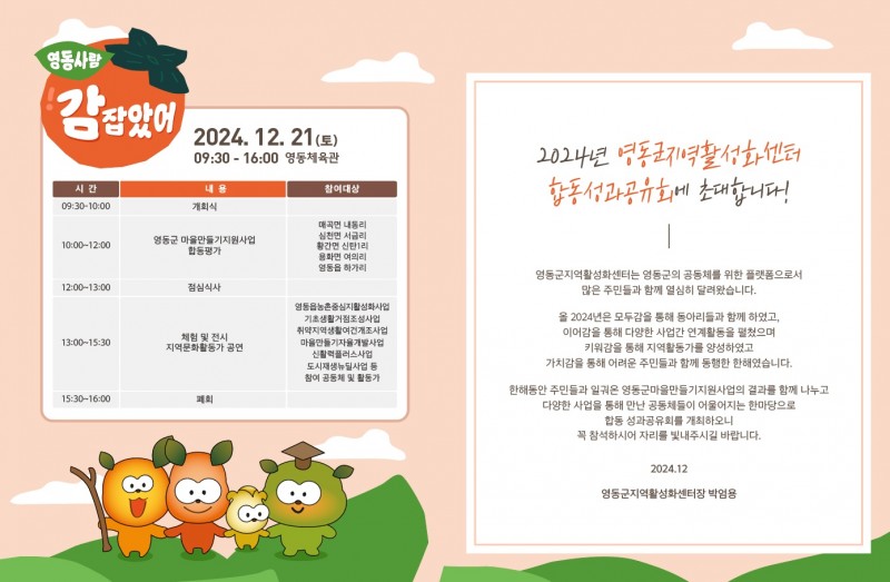 행사 영동군지역활성화센터 합동성과공유회 <영동사람 감 잡았어> 개최 안내